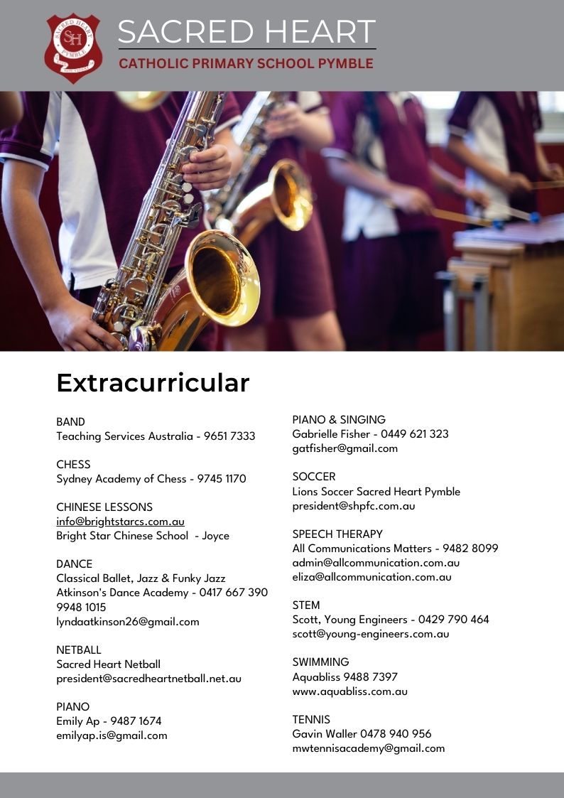 Sacred Heart offers a wide range of extracurricular activities led by specialist tutors and external providers. These include music, sport, language, performing arts, STEM, and support services—all held on or near school grounds for your convenience.